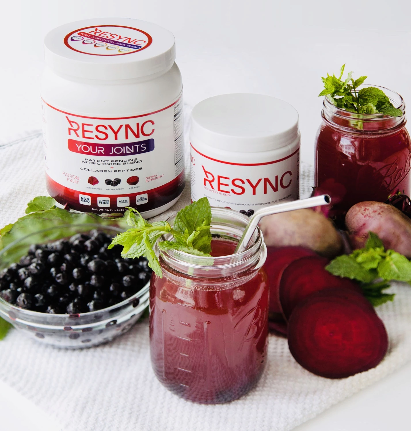Resync Recovery is a science-based natural nitric oxide superfood blend of red spinach, red beets, and aronia berries to boost energy and promote faster recovery from physical activity. When you drink resync recovery blend, you know you are getting the functional benefits of all of the standardized natural nitric oxide superfoods not just red beets! Our powerful blend is also supported with mango extract, ginger, a new twist of turmeric extract, hyaluronic acid, & inulin.